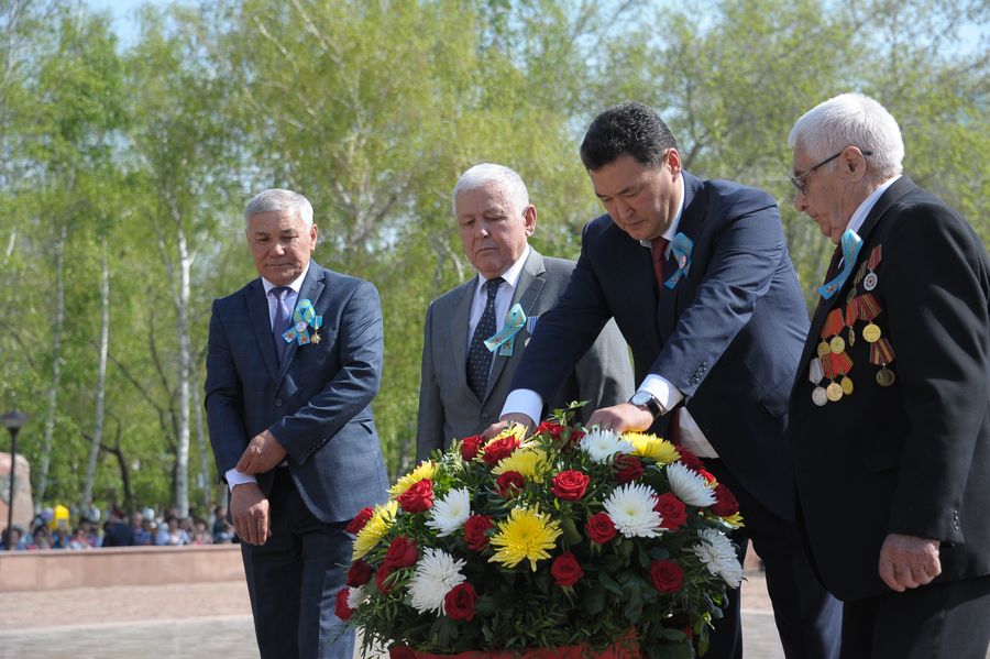 "Мы — дети победителей, и гордимся этим Нет ни одной казахстанской семьи, которую бы не задела эта война. Сегодня мы с особым чувством вспоминаем всех, кто проявил стойкость и силу духа, отдал жизнь за победу над фашизмом", — сказал Б.Бакауов.