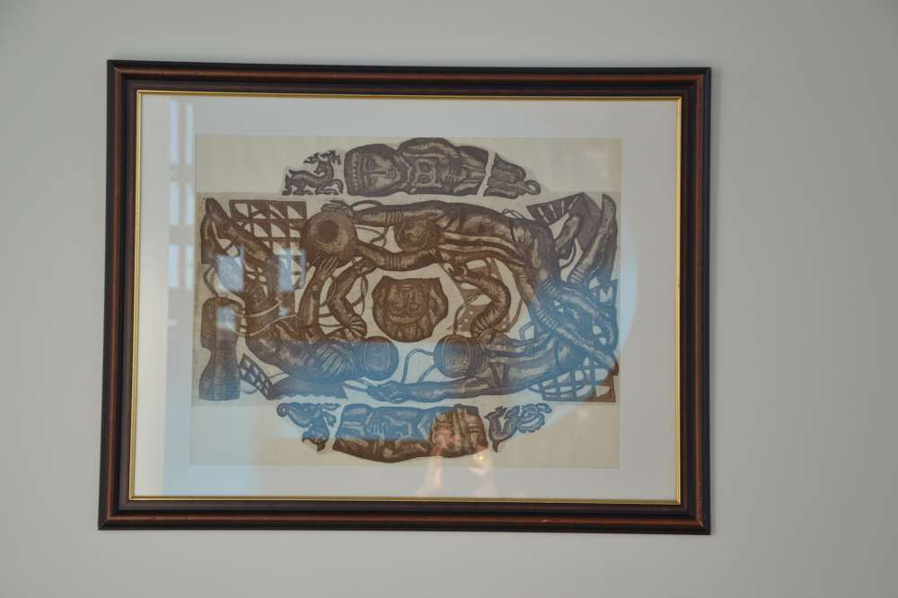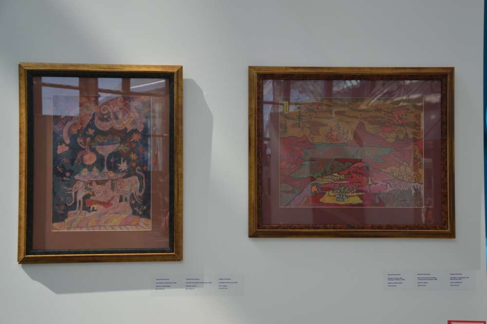 "Это уникальная картина Ророкина, где он использовал технику Стерлигова. Необходимо 15-20 минут, чтобы понять, что изображено на картине. Это чашно-купольная система, с помощью которой художник изобразил юрту, комету и природу. Здесь мы видим сочетание космоса и традиционной жизни", - рассказал Слудский.