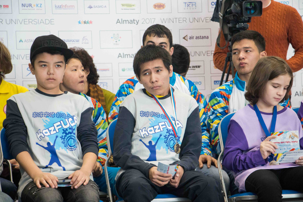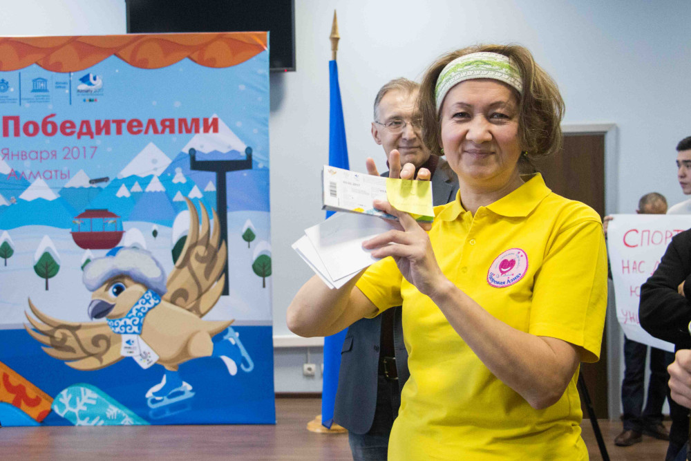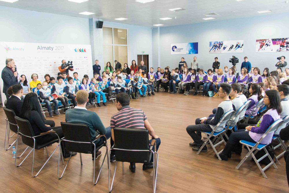 По завершении интересной и насыщенной встречи с кумирами каждый ребенок получил билет на различные соревнования от Дирекции по подготовке и проведению 28-й всемирной зимней Универсиады.