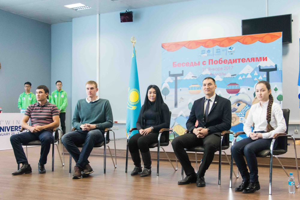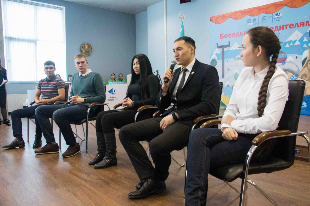 Молодежь поинтересовалась у спортсменов, кто направил их на выбранный путь. К примеру, Баландина в плавание привели его родители, Серик Сапиев занялся боксом в тот период, когда у детей не было другого развлечения, кроме как спорт. А юная чемпионка по шахматам Жансая Абдумалик пришла в этот вид спорта, благодаря ее отцу, который стал ее тренером и сенсеем.