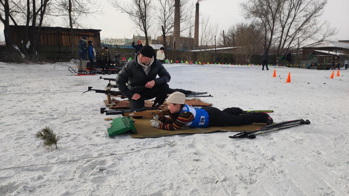 Мы решили посетить учебный полигон и отправились в ДЮСШ. В день съёмок здесь проходил чемпионат области Абай по биатлону среди младших и средних юниоров.