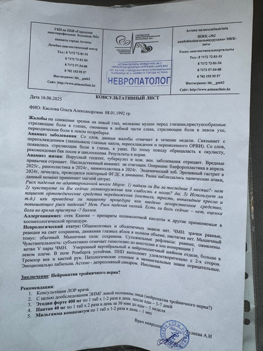 Врачи в Астане не смогли поставить точный диагноз. Чтобы спасти зрение и здоровье, Ольга уехала в Москву, где проходит обследования у офтальмологов, неврологов, инфекционистов и токсикологов.