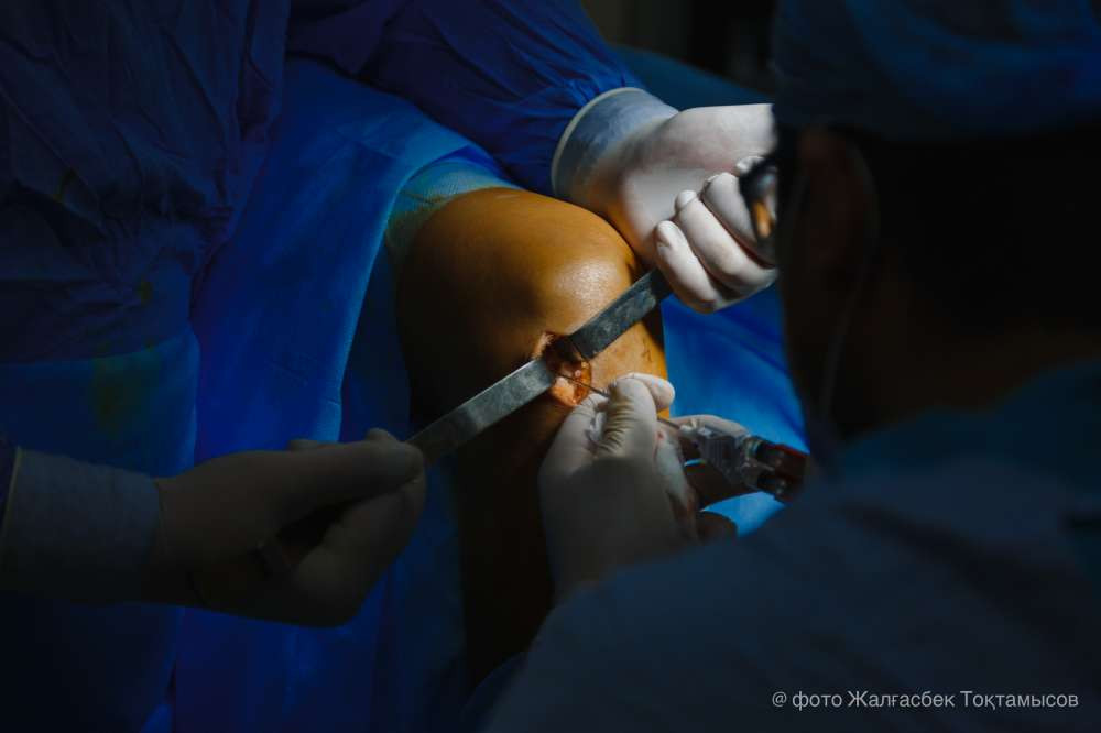 “Сегодняшняя операция – это второй этап оперативного вмешательства. Месяц назад делали пациенту артроскопию – это малый инвазивный метод, когда мы заходим в сустав через маленькую камеру и вся операция проводится через монитор. Мы увидели, что у пациента есть дефект хряща, который сложно восполнить, но сделать это надо. Взяли небольшой фрагмент синовиальной оболочки – это микробиологический материл. Его мы отправили в Национальный центр биотехнологий, а там в течении четырех недель они вырастили десять миллионов стволовых клеток, которые мы сегодня имплантировали”, - рассказал руководитель Республиканского центра артроскопии и спортивной травмы Ерик Раймагамбетов.