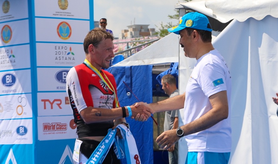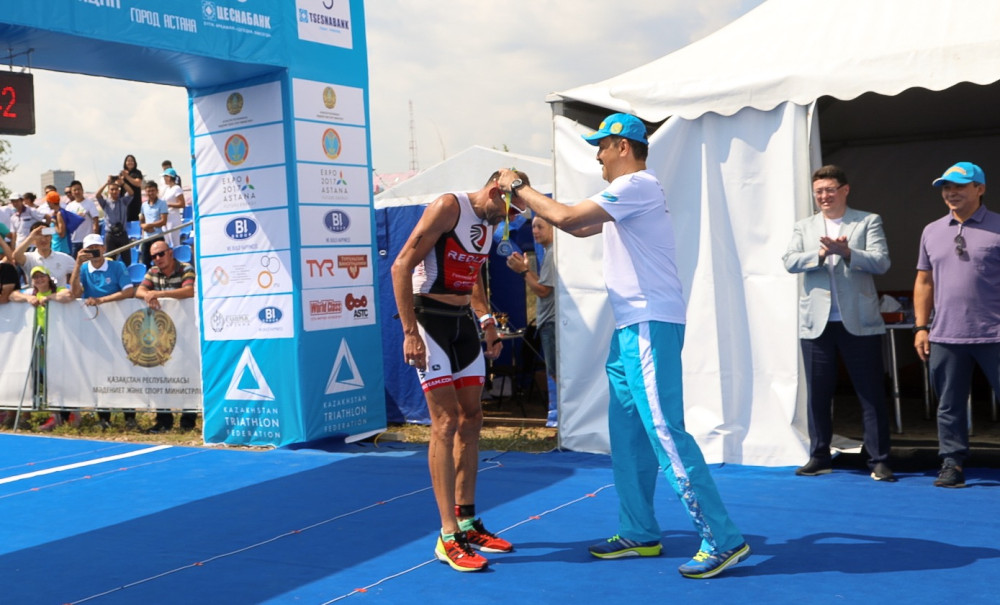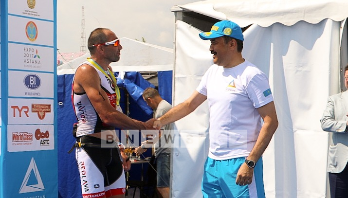 Напомним, что в Астане стартовали международные соревнования по триатлону. Президент Казахстанской федерации триатлона Карим Масимов лично поздравил сегодня участников триатлона.