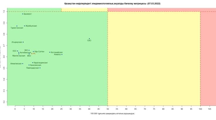 Опубликована матрица оценки эпидемиологической ситуации в регионах Казахстана на 7 марта 2022 года, передаёт BaigeNews.kz со ссылкой на coronavirus2020.kz