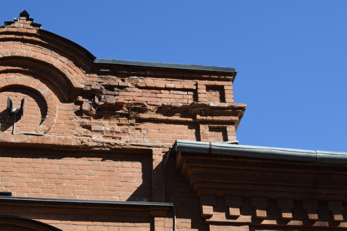 А само здание по-немногу разваливается. Кирпичная кладка, особенно в нижней части, практически уничтожена.