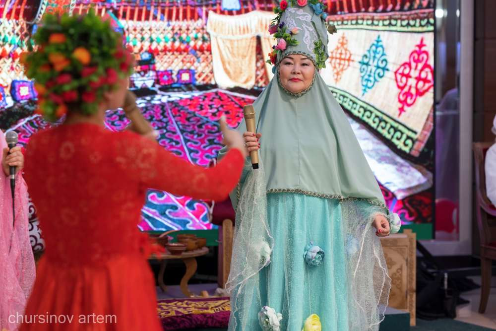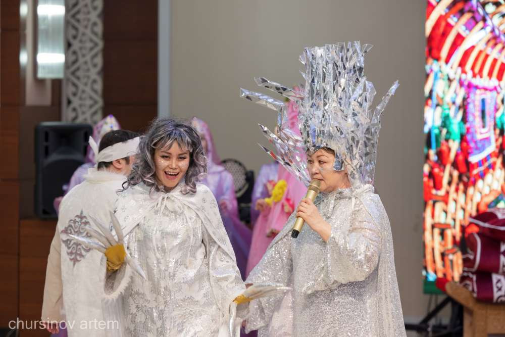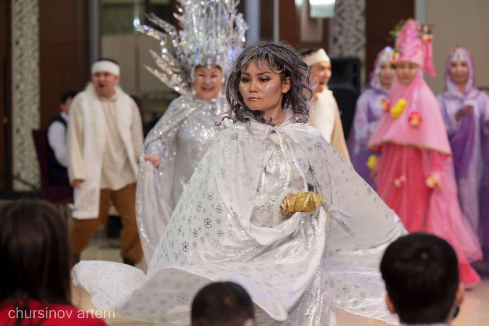 "Здесь есть темные силы – месяцы январь, февраль, которые представляют зиму. По сюжету они не хотят уступать место светлым силам – марту, апрелю. Также присутствуют такие персонажи, как Кун ана (тюркская богиня солнца, жизни, плодородия и тепла – прим. ред.), Жер ана, Отпекеш (дочь солнца), которая символизирует весну, Наурыз. Темные силы представлены персонажами Акпан, Токпан, Камыркемпир – их матушка и Когугыз. Между ними идет некое противостояние", – рассказала об основных героях праздничного представления Айгуль Кеменгерова.