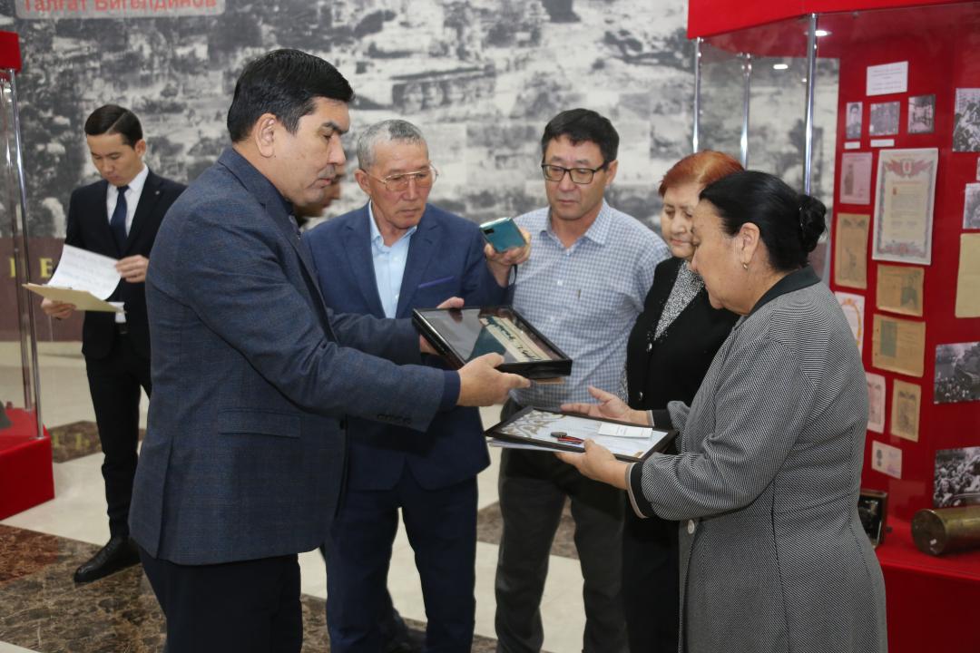 Ритуал передачи останков продолжился в зале боевой славы "Даңқ", расположенном в городском парке Жеңіс. Родственники Кадирбека Даулеткулова выразили слова благодарности организаторам мероприятия.