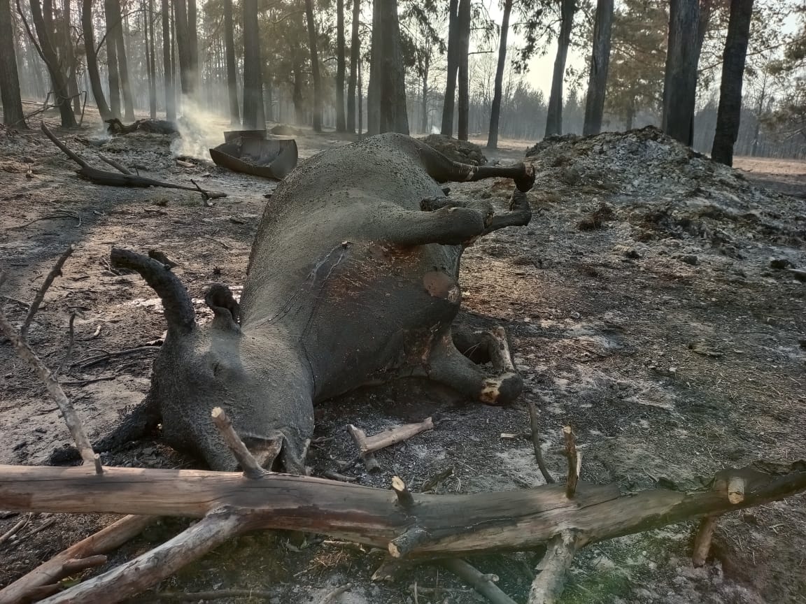 О том, что пожар вспыхнул неожиданно и был стремительным, говорят и трупы домашних животных. Полностью разрушен дом лесника близ села Казанбасы, погибли несколько голов КРС.