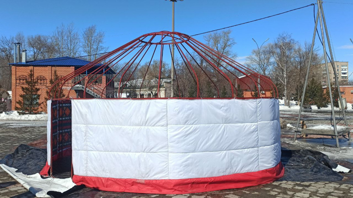 На площади устанавливают каркасы будующих юрт и торговых рядов. Пришедшее в регион долгожданное потепление ускоряет работу. Уже завтра здесь все будет готово к празднованию торжества весеннего обновления.