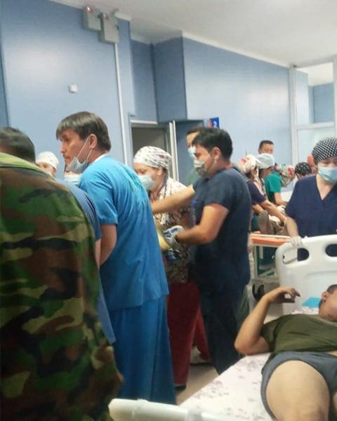 В городскую больницу №1 г.Тараз с различными ранениями поступило 32 человека (анкетные данные уточняются).
