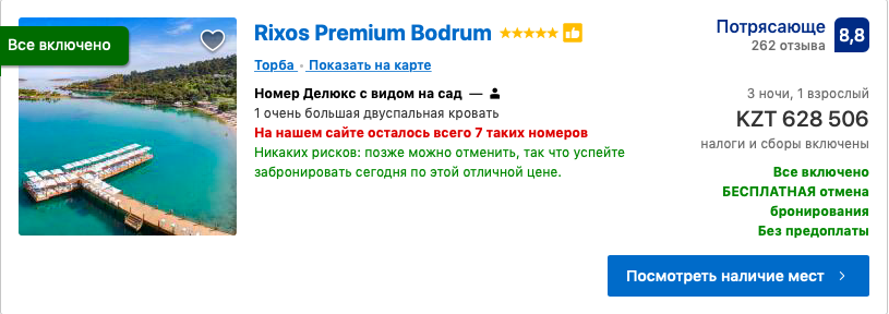 К слову три ночи в пятизвездочном отеле Rixos Premium Bodrum в Турции выйдут дешевле.