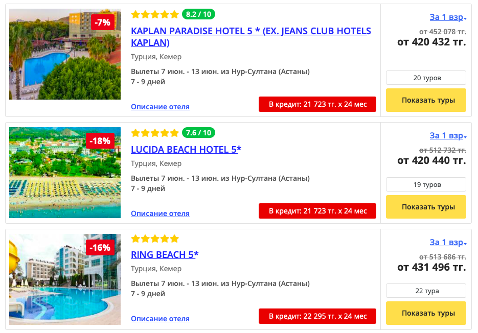 Менее 350 тысяч тенге стоит отдых в пятизвездочном отеле на 7-9 дней в Аланье и Сиде. В Кемер туры дороже.
