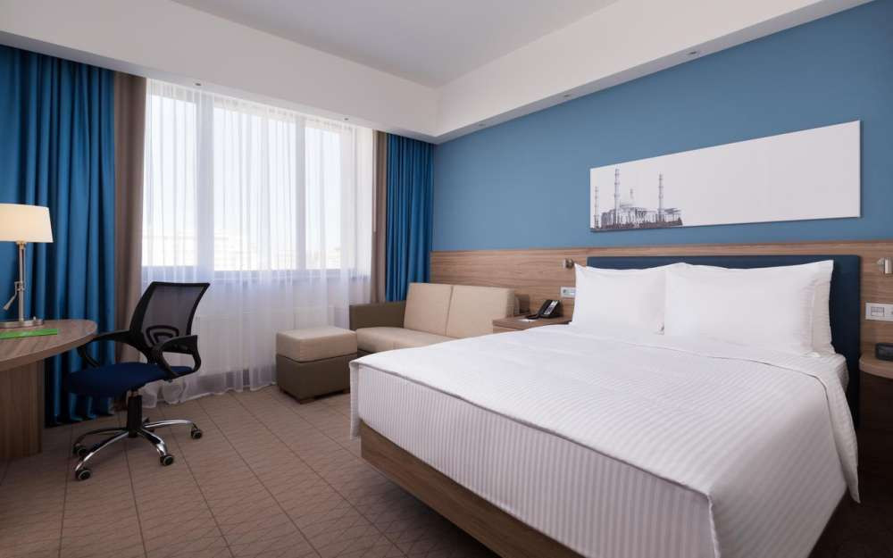 Отель Hampton by Hilton Astana расположен в четырех километрах от здания Мажилиса парламента. Рядом также находятся Ботанический сад и ЭКСПО Астана. На сайте отеля сообщается, что стоимость номеров начинается от 41 доллара США (это примерно 18 тысяч тенге по курсу на 13 января) за сутки - это самый простой вариант. В стоимость включен шведский завтрак. В отеле имеется также фитнес-центр.