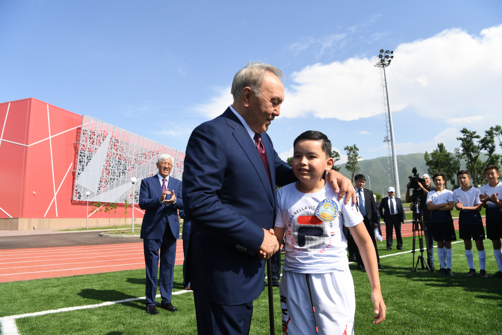 Мероприятие началось с открытия специальной мемориальной доски, находящейся в фойе спорткомплекса. После чего Елбасы в сопровождении главы края Жетысу Амандыка Баталова ознакомился с работой нового спортивного объекта, площадь которого занимает порядка шести гектаров.