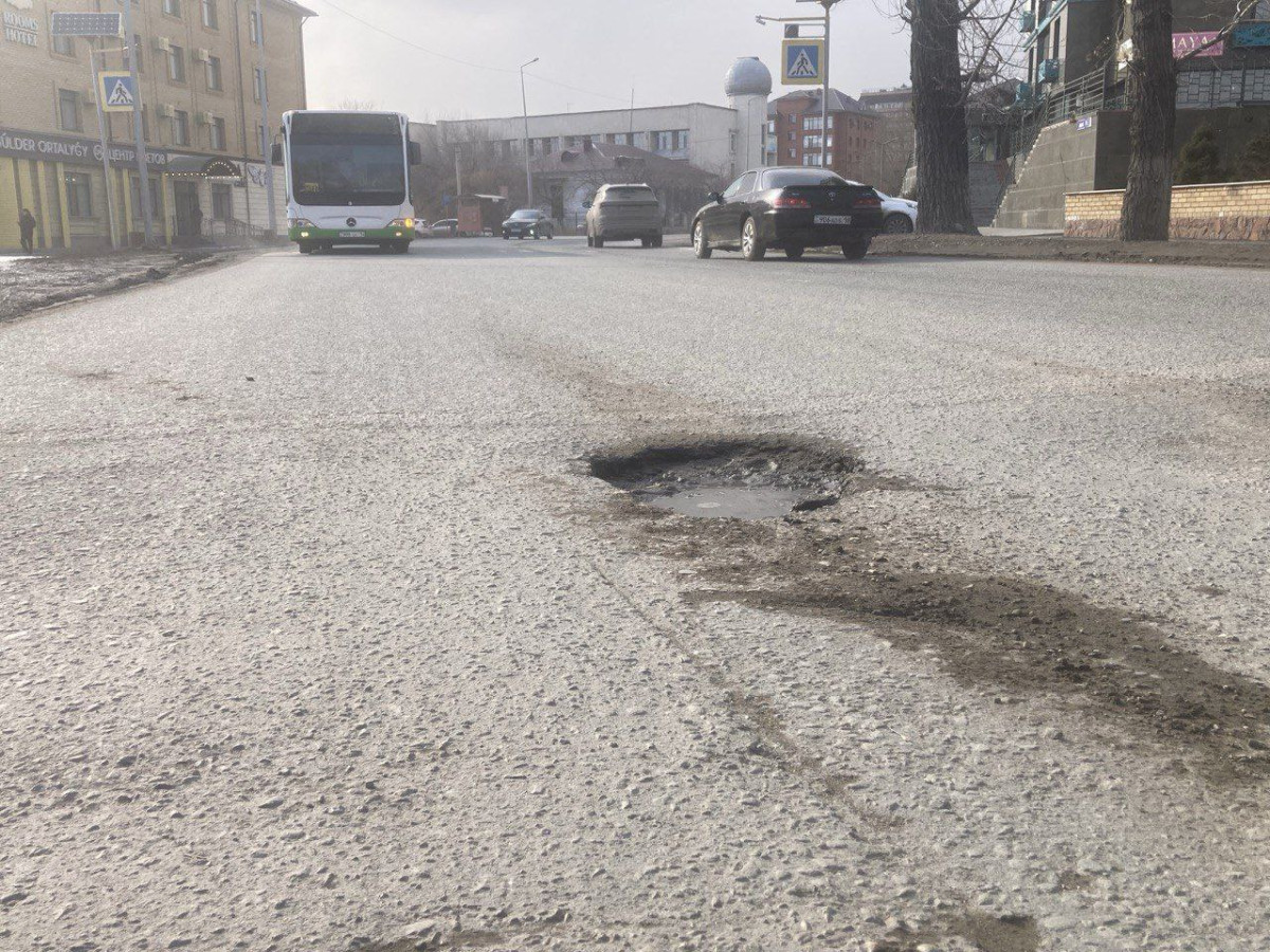 "Снег растаял, вскрылись все проблемы. И это не просто трещины в асфальте или редкие сколы, это огромные выбоины, глубокие ямы, часто - идущие одна за другой. Преодолеть их без ущерба для машины почти невозможно. Видны следы от колёс большегрузных автомобилей, которые оставляют после себя траншеи, где в первую очередь разрушается асфальт", - делится наболевшими впечатлениями Алмат Жумабеков.