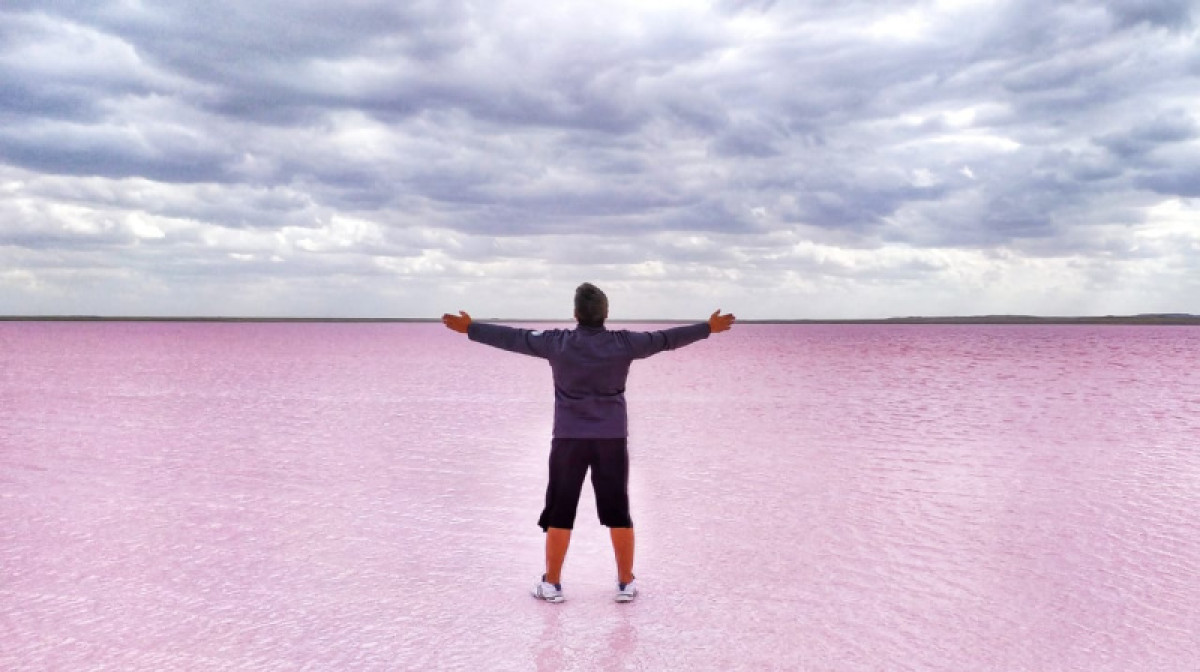 "Озеро находится по дороге в Павлодарскую область, за поселком Ерейментау, буквально в 180 километрах. Само озеро называется Кобейтуз, оно очень насыщено солью. В нем невозможно утонуть, вода хорошо держит, как будто сидишь в воде. Окрашивание обусловлено благоприятными особенностями летнего периода и развитием популяции Дуналиелла солоноводная, одноклеточной микроводорослью, которая и окрашивает водоем в розово-красный цвет", - рассказал депутат.