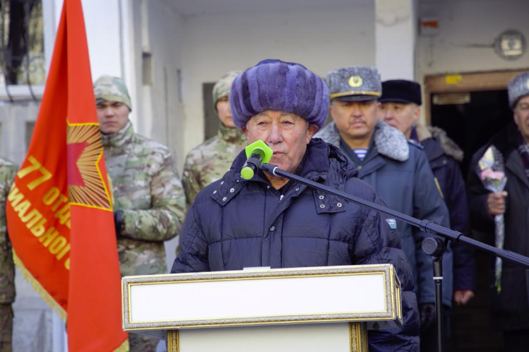 Митинг открыл командующий Десантно-штурмовыми войсками генерал-майор Алмаз Джумакеев. Он рассказал о жизненном и военном пути Кара майора, его заслугах и бесценном военном опыте, которым Борис Керимбаев щедро делился с молодым поколением военнослужащих.