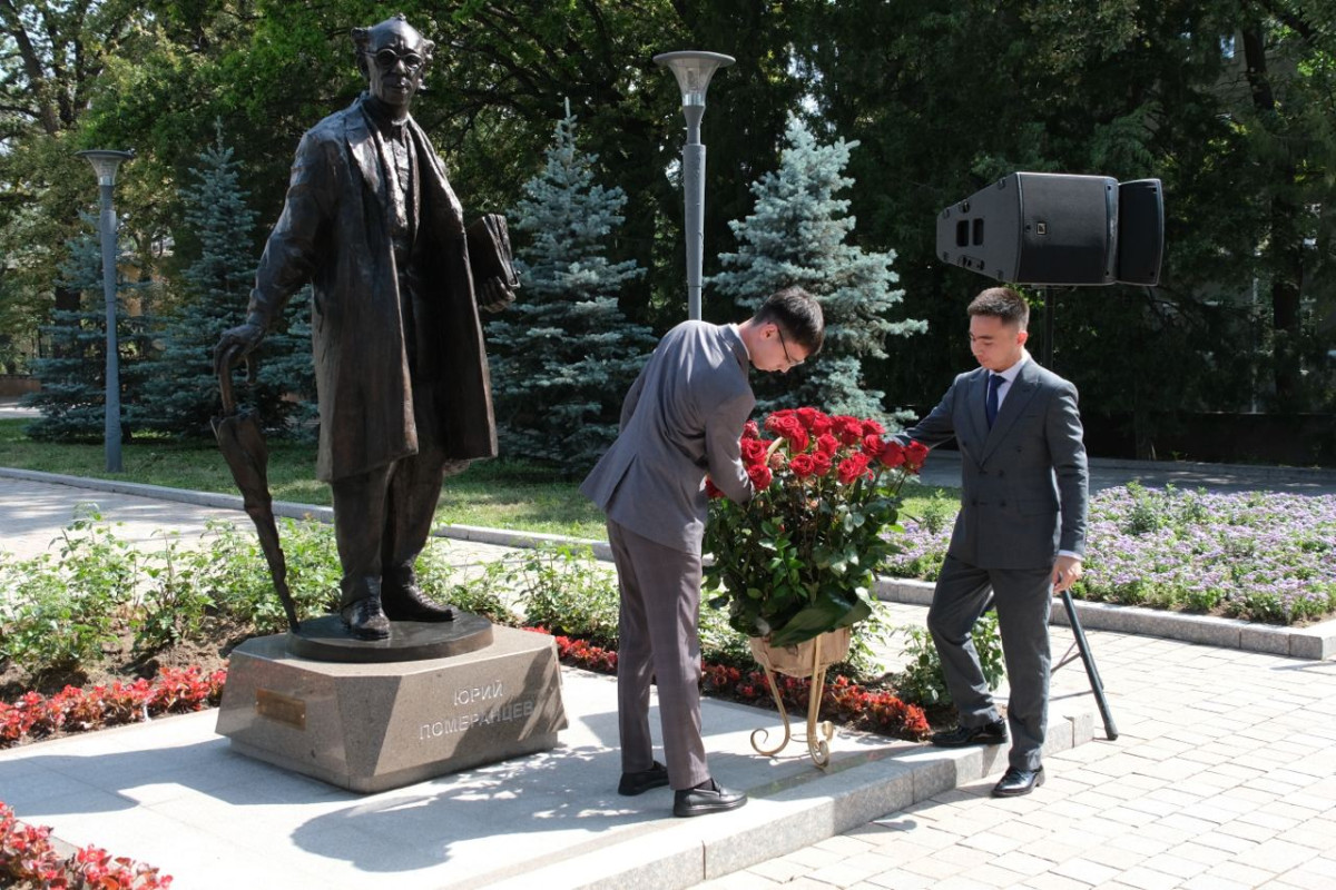 Перед зданием театра драмы имени Лермонтова в Алматы установили бронзовую скульптуру актёра Юрия Померанцева. В церемонии открытия памятника приняли участие аким Алматы Ерболат Досаев, представители творческой интеллигенции и горожане, передаёт BaigeNews.kz.