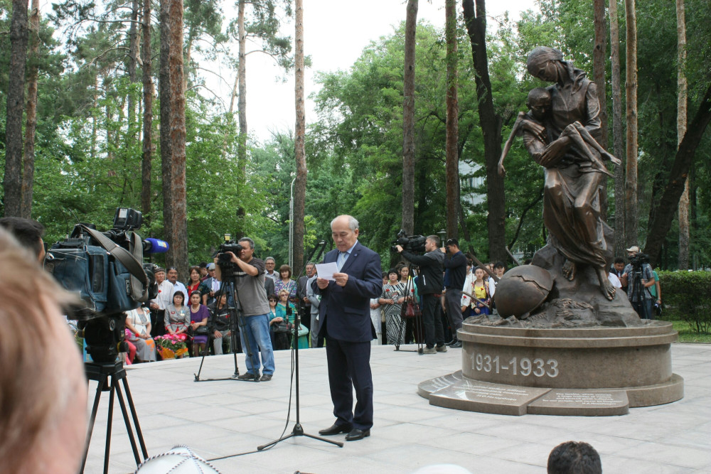 «Сегодня в День памяти жертв политических репрессий, мы открываем памятник жертвам голода 1931-1933 годов, чтобы увековечить эту не проходящую боль нашего народа. По поручению Главы государства в прошлом году нами был объявлен конкурс на создание эскиза будущего памятника. Среди более 20 предложенных работ решением государственной комиссии был выбран проект Дулата Усенбаева, Айдоса Буркитбаева и Каната Бегулиева - скульптура «Ана». Образ матери, прижимающей к груди обессилевшего от голода ребенка, олицетворяет всю скорбь казахского народа. Мать - это источник всего сущего, основа нации, гарантия будущего», - сказал Бауыржан Байбек.