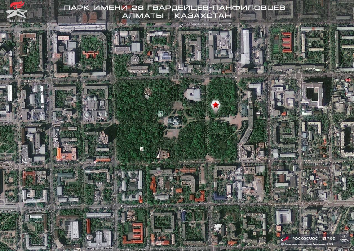 Среди снимков из космоса можно увидеть и Парк имени 28 гвардейцев-панфиловцев в Алматы.
