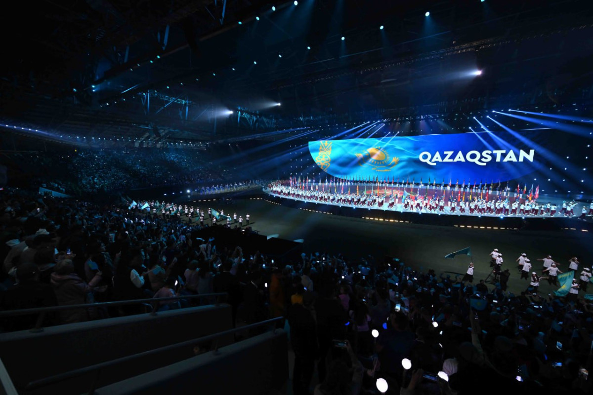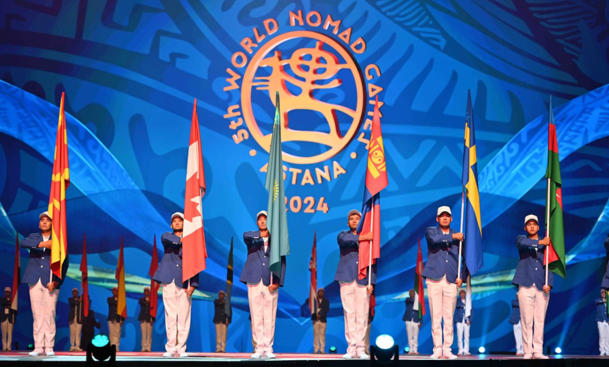 Парад стран-участниц проходит на стадионе "Астана Арена", где проводится открытие Всемирных игр кочевников, передает BaigeNews.kz.