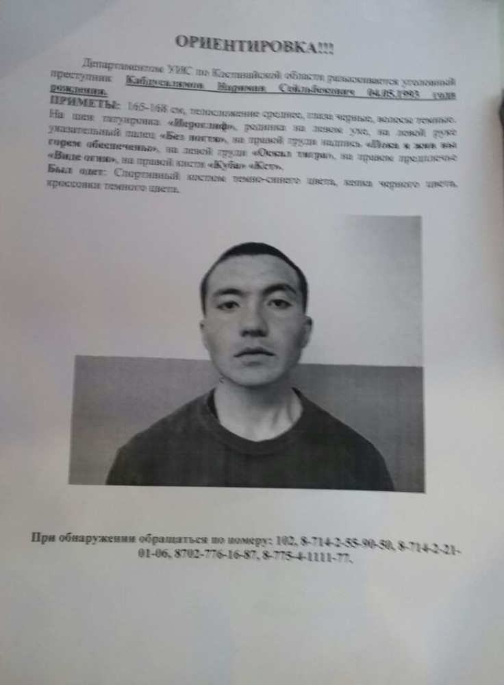 Департаментом УИС по Костанайской области разыскивается 25-летний уголовный преступник, передаёт BNews.kz со ссылкой на Alau.kz.