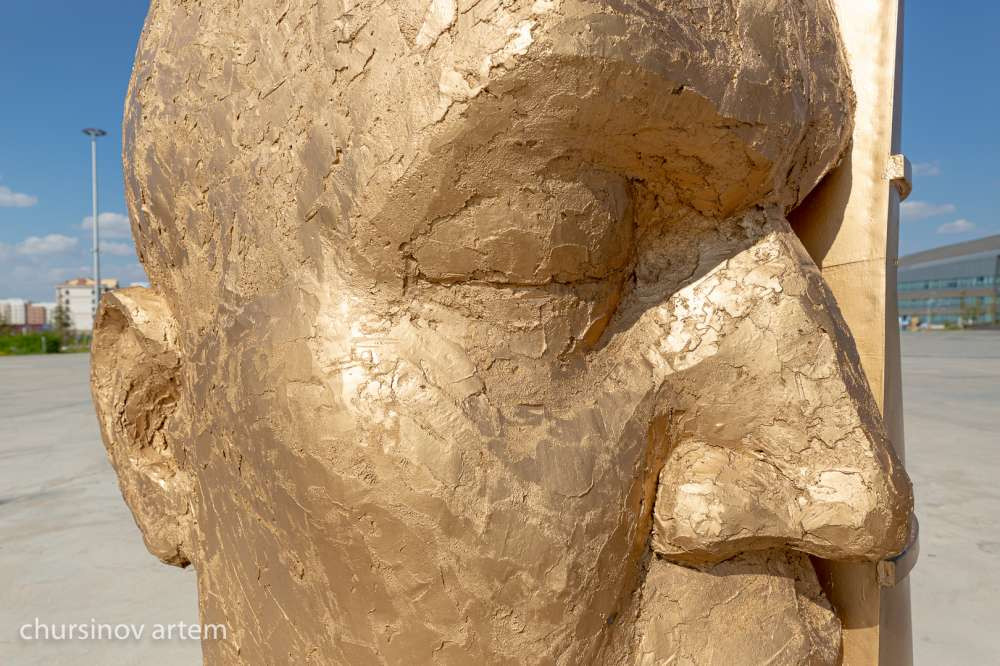"Представляете, как сложно в этом масштабе создавать текстуру лица. Иногда, когда ты лепишь из пластилина человечка — это очень сложно, а сделать такую скульптуру высотой почти в два с половиной метра — особое мастерство. Он сейчас преподает в "Жургеневке" (Казахская национальная академия искусств имени Т. К. Жургенова — прим. ред.), и это тоже важно, что он как-то передает традиции и навыки дальше", — говорит куратор.