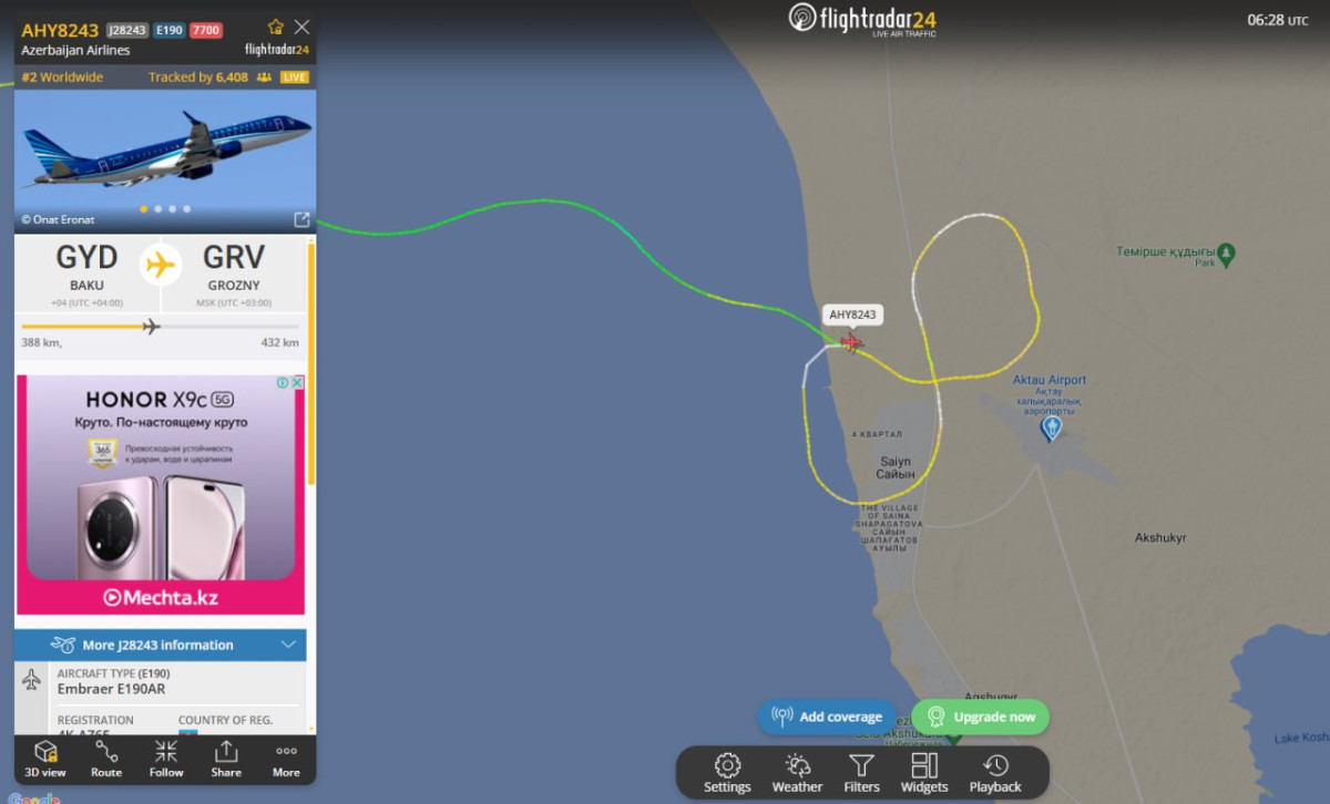 "Данный самолёт принадлежит авиакомпании Azerbaijan Airlines. Обстоятельства происшествия уточняются. Будет произведено специальное расследование", - проинформировали в Министерстве транспорта РК.