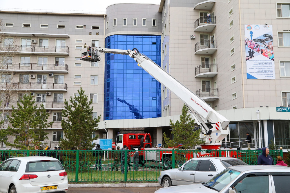 "Для проведения противопожарных учений на территории онкологического центра были привлечены пять формирований, которые организовали эвакуацию больных и пострадавших на месте пожара и оказали первую медицинскую помощь. Также привлечены городские службы – скорая помощь и противопожарная служба пожарной части №1, которые организовали подачу огнетушительных средств к месту пожара и эвакуацию тяжелобольных с верхних этажей. На месте работали радиологическая бригада, бригада экстренного реагирования, бригада лучевой диагностики", - сказал заведующий сектором гражданской обороны и ЧС онкологического центра Болтабек Калиев.