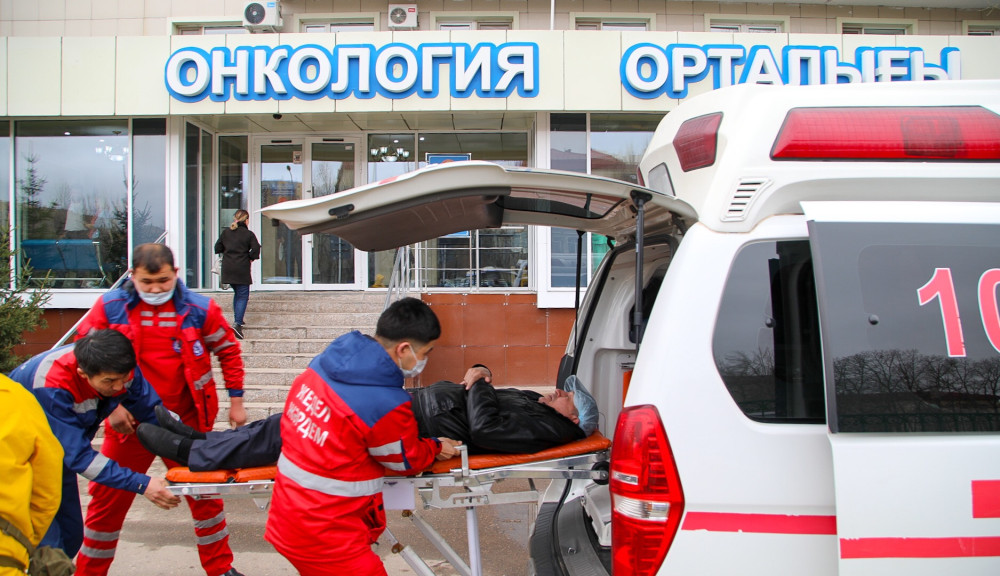 "Кому-то не хватает кислорода, кто-то ногу сломал, у кого-то сердце схватило", - говорит заведующий сектором гражданской обороны и ЧС онкологического центра Болтабек Калиев.