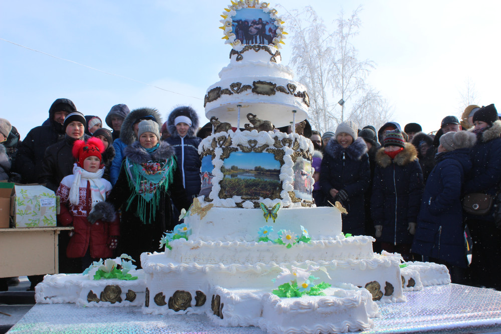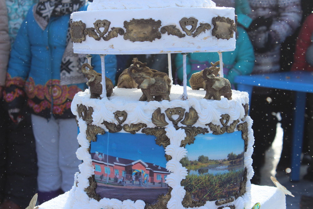 Гигантский шоколадно-ванильный торт, украшенный слонами и кондитерской печатью достопримечательностей пригородного села Павлодарское, стал подарком жителям на Масленицу, передает корреспондент BNews.kz. Об идее испечь большой торт за спонсорские средства и накормить им все село кондитеру рассказал аким Павлодарского Аждар Жусупов.