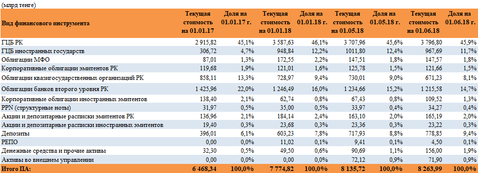 "Чистый инвестиционный доход фонда за первые пять месяцев 2018 года составил 236,39 млрд тенге, в то время как доход за аналогичный период 2017 года был равен 114,38 млрд тенге. Доходность пенсионных активов ЕНПФ, распределенная на счета вкладчиков (получателей) с начала 2018 года, составила 2,98%. Напомним, что чистый инвестиционный доход фонда за весь прошлый год составил 550,56 млрд тенге. Комиссионные вознаграждения фонда за управление средствами составили 15,03 млрд тенге за январь-май 2018 года, увеличившись на 20,0% в сравнении первыми пятью месяцами прошлого года", - подчеркнули эксперты.