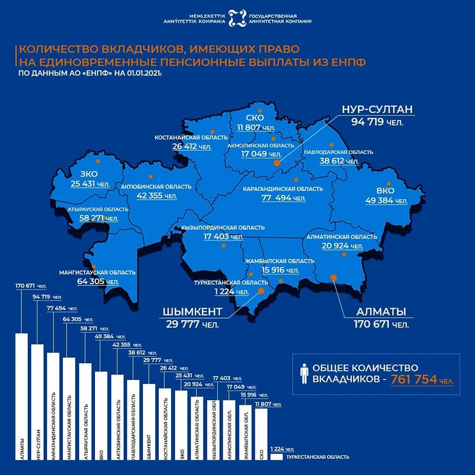 Государственная аннуитетная компания выпустила инфографику о количестве казахстанцев в регионах, имеющих право снять часть пенсионных накоплений на покупку жилья, передает BaigeNews.kz.