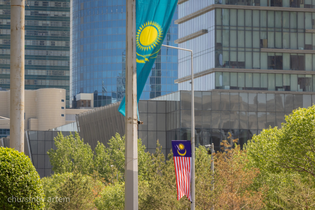"При вертикальном развешивании флагов с малайзийской стороной был согласован именно этот формат", - отметил пресс-секретарь МИДа Айбек Смадияров.