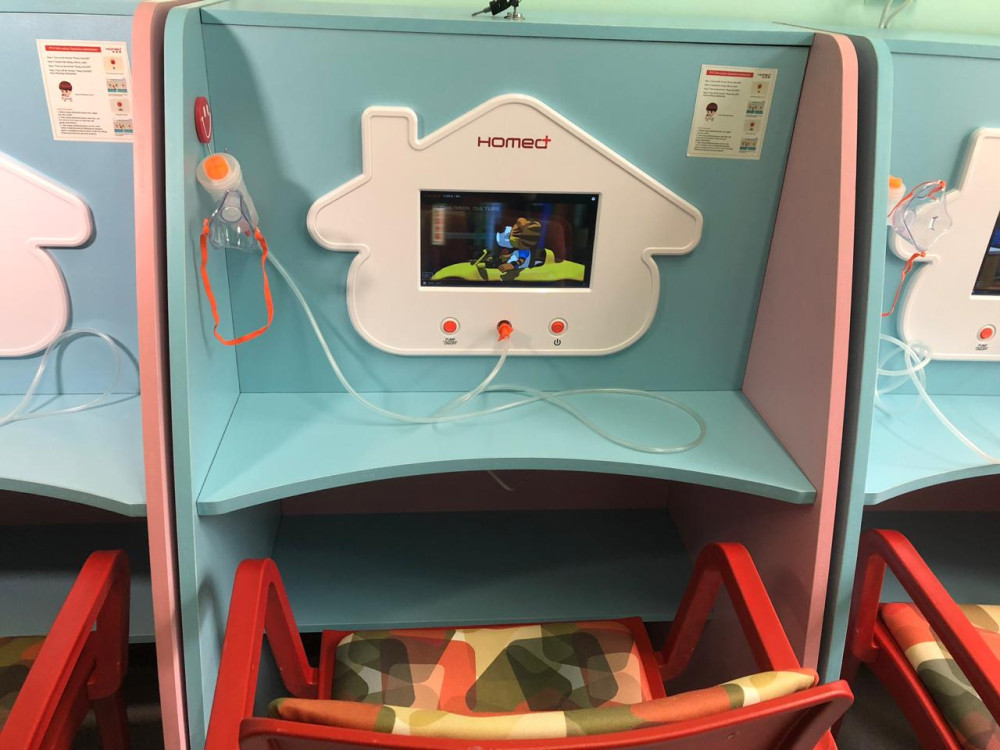 "Дети с одного года до 18 лет с заболеваниями дыхательной системы очень тяжело самостоятельно дышат, а здесь им будет в этом кабинете легко дышать. Они при этом смотрят телевизор, не отвлекаются от своего дыхания. У каждого места свой дисплей с мультиками. Для них важно убрать акцент с дыхания, для того чтобы более свободно лекарство поступало", - пояснила Ульянова.