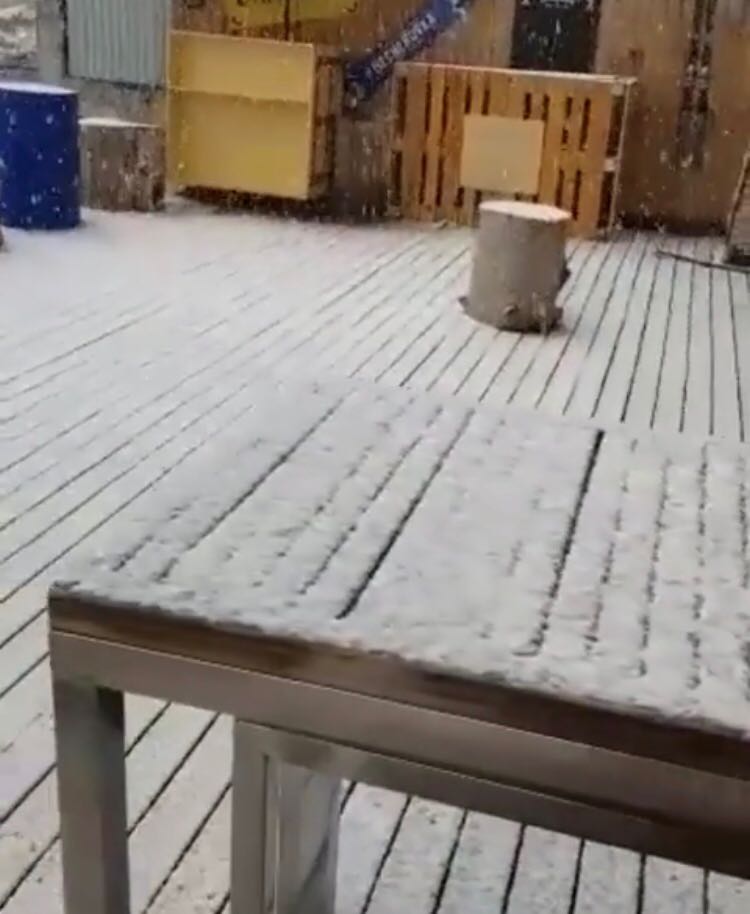 "28 августа 2018 и первый снег на @shymbulakmountainresort. К длинным выходным ожидаем потепление", - написали на официальной странице курорта в Instagram.