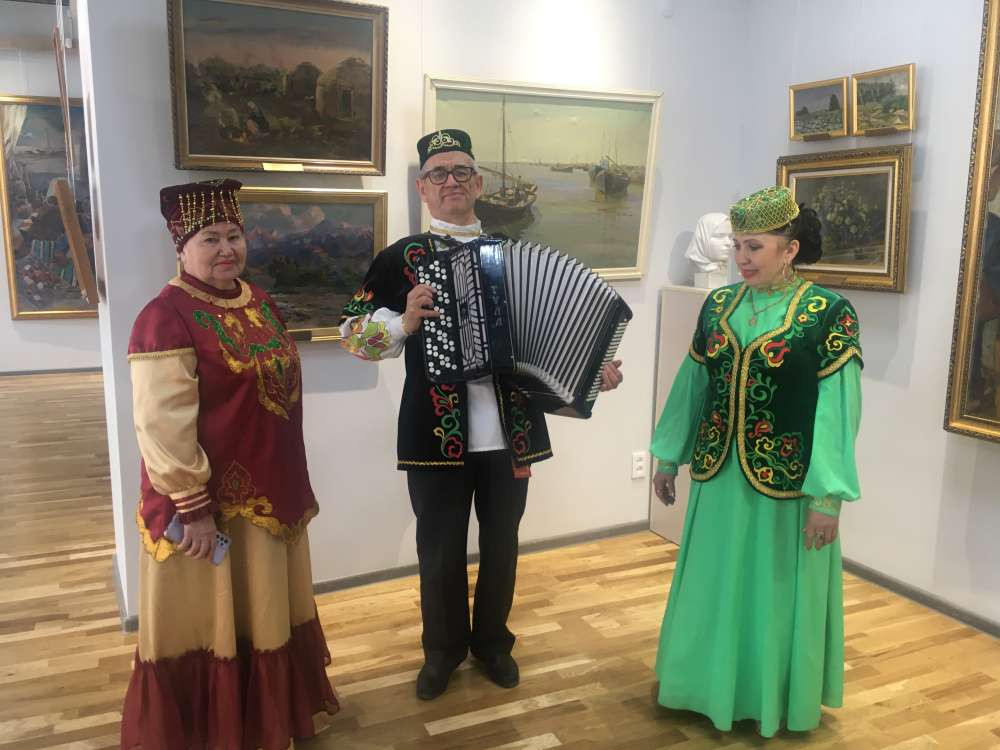 В областной Ассамблее - 20 национальных центров, и работы художников всех национальностей присутствуют в музейных фондах. Сотрудники музея их отобрали и вышли с инициативой "живой" открытки. Идея понравилась и накануне праздника музей наполнился красками национальных костюмов, песен и танцев.