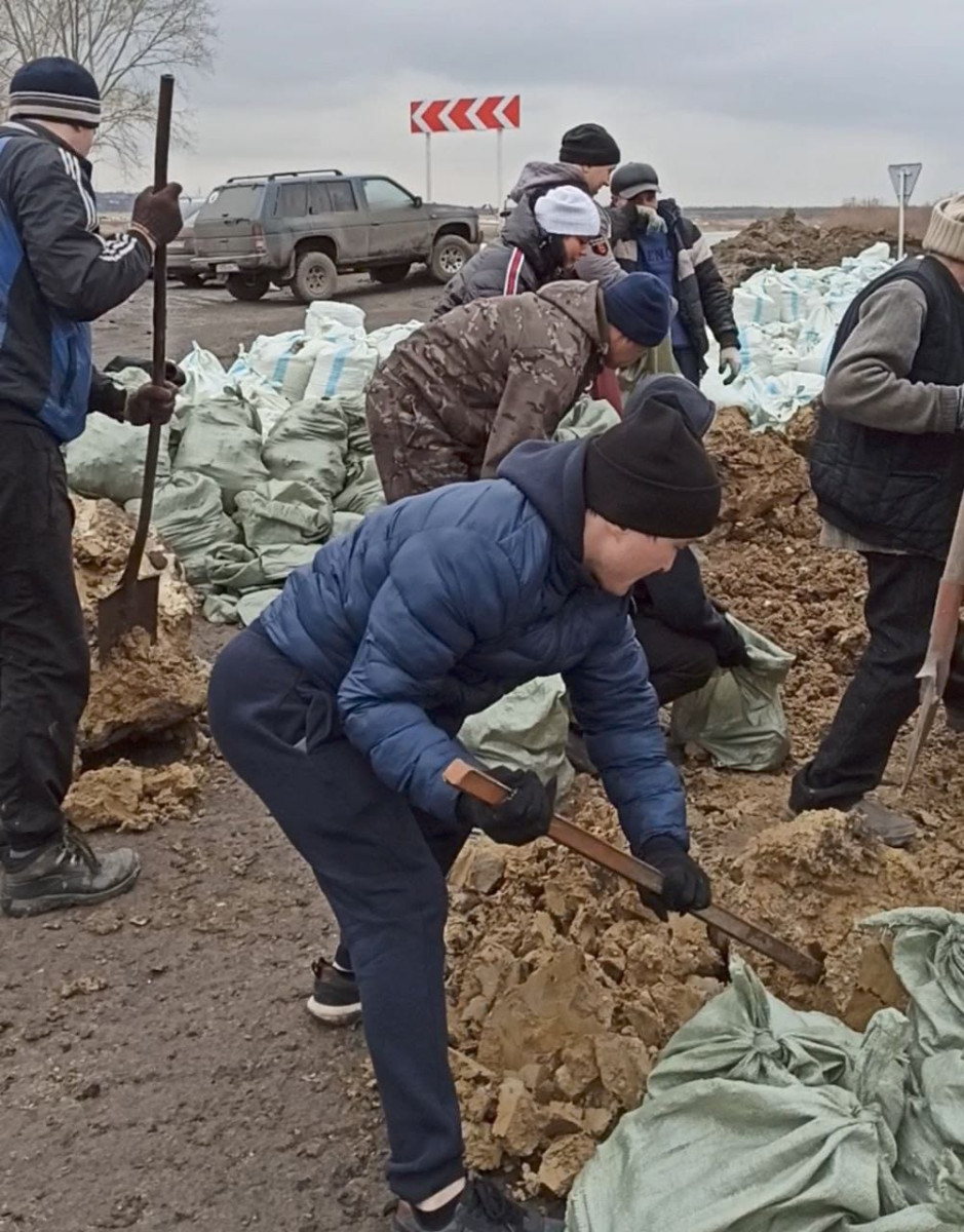 "Мы наполняем мешки песками и дальше их в одну колонну ставим и делаем дамбы. Я родился в южной стороне Казахстана. Таких наводнений там не было. И я впервые столкнулся с такой проблемой. Но всё же мы в этой ситуации докажем, что в трудное время мы всегда вместе и мы это переборем", – говорит солдат Жангельды Ошанов.