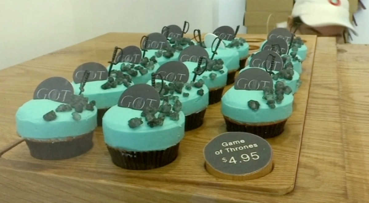 Один из вариантов - капкейки с начинкой из питайи (по-английски - dragon fruit) - отсылка к одной из главных героинь - Матери драконов Дайнерис. Стоимость необычного десерта почти по 5 долларов за штуку. Стоит отметить что разлетаются они как только попадают на прилавок.