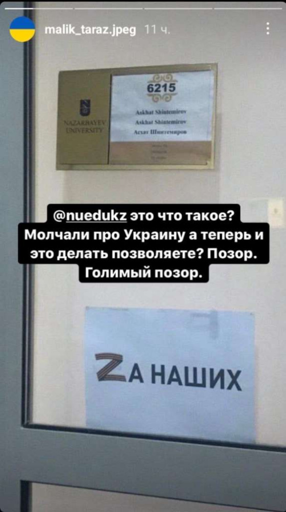 Администрация Назарбаев Университета прокомментировала действия своего сотрудника из IT-департамента, который вывесил плакат "Zа наших" на дверях своего кабинета, передаёт BaigeNews.kz.