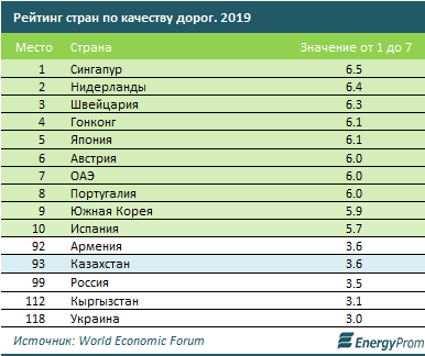 Максимальная оценка, которая может присуждаться в рейтинге – 7.0, минимальная – 1.0. Средний показатель за 2019 год составил 4.07. Топ-3 стран по самому высокому качеству дорог составили Сингапур, Нидерланды и Швейцария.