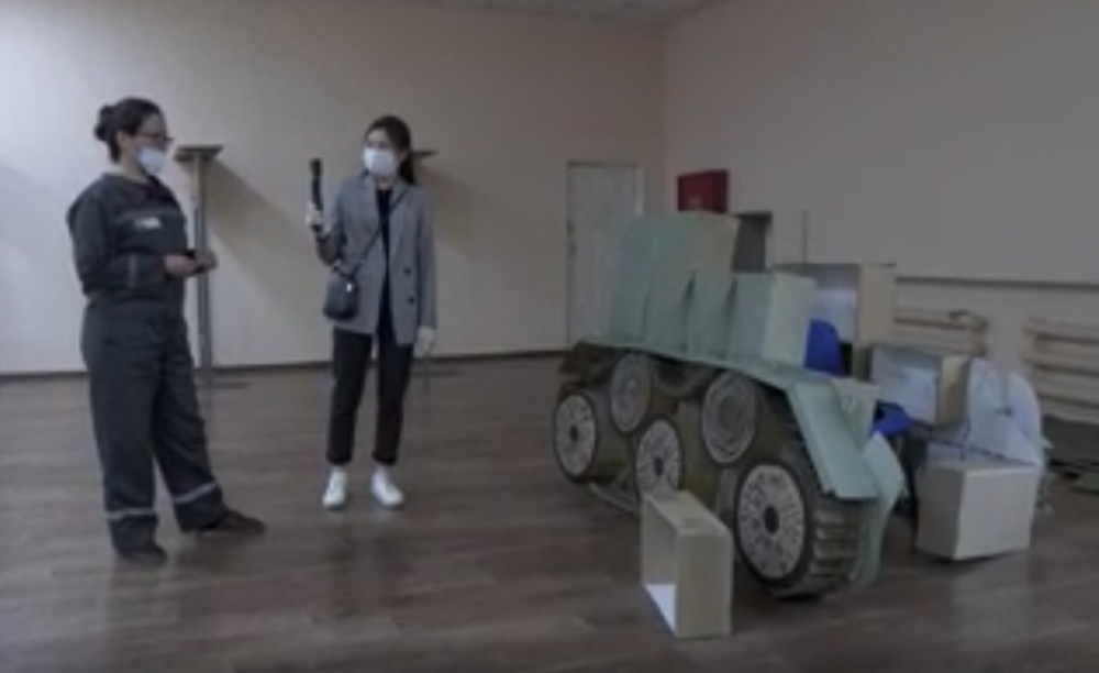 Затем мы направились в Дом культуры, где заключенные готовились к майским праздникам. Одни делали макет танка из картона и билборды для Бессмертного полка. Другие готовились к праздничному концерту, повторяли стихи, песни и танцы.