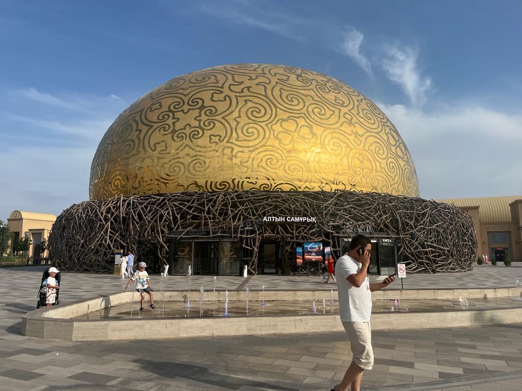 Особое впечатление у детей оставит "Летающий театр", он сделан в форме гнезда мифической птицы Самрук с огромным золотым яйцом. Внутри проводится интерактивный экскурс, погружающий в историю древнего города, а также 8D-шоу, благодаря которому дети увидят все достопримечательности Казахстана.