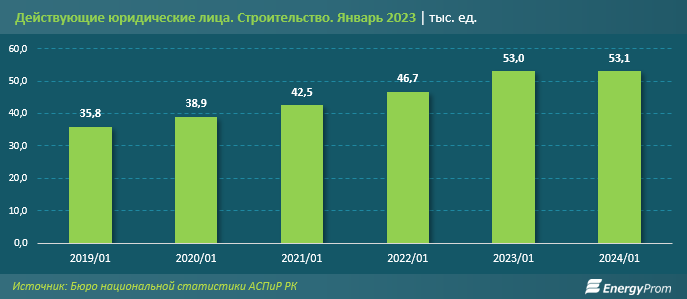 На начало марта текущего года в Казахстане осуществляли деятельность в сфере строительства более 53 тыс. компаний, передает BaigeNews со ссылкой на Energyprom. При этом из года в год наблюдается динамичный рост количества таких предприятий.
