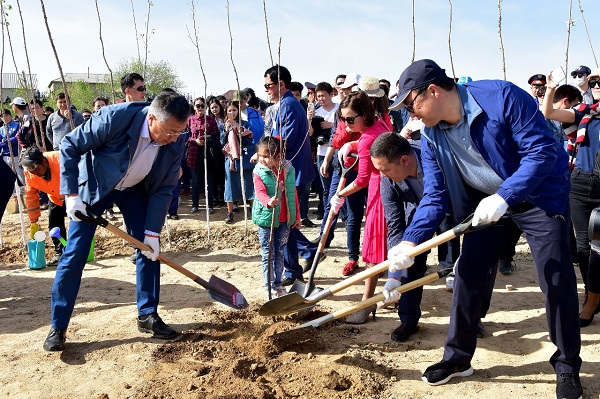 К посадке саженцев на территории 38 га подключились аким Южно-Казахстанской области Ж. Туймебаев, советник Постоянного Представителя ООН в Казахстане И. Орюнова и аким Шымкента Н. Сауранбаев.