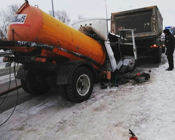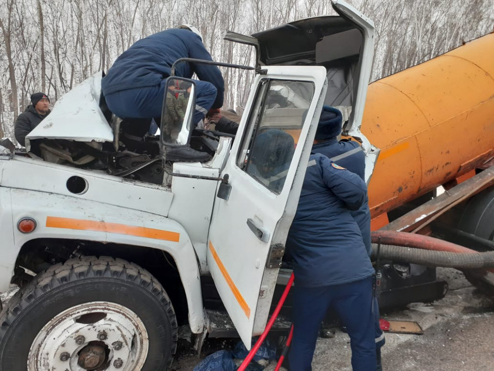 BaigeNews.kz. В результате ДТП ассенизатор практически сложился вдвое. 52-летний водитель ассенизаторской машины оказался зажат в салоне.