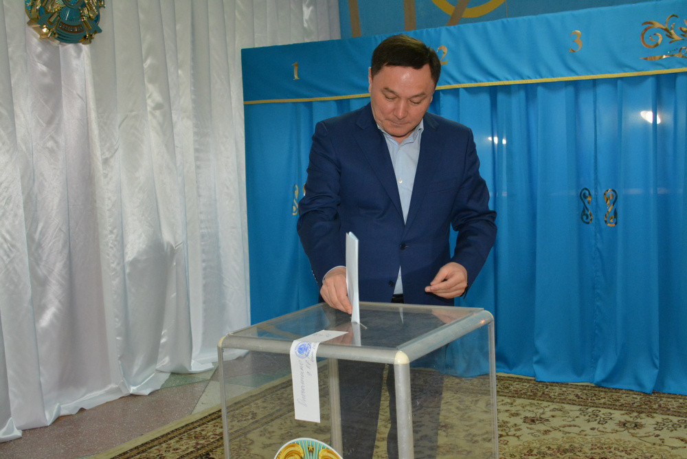 На избирательном участке под номером 8 с 7 утра царит праздничная атмосфера. Одним из первых своё конституционное право реализовал аким Акмолинской области Ермек Маржикпаев, сообщает корреспондент BNews.kz.
