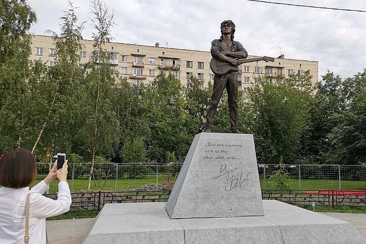 Сегодня в Петербурге также состоится официальное открытие памятника Виктору Цою, который установили накануне в сквере на улице Танкиста Хрустицкого – недалеко от места, где жил Виктор Цой.
