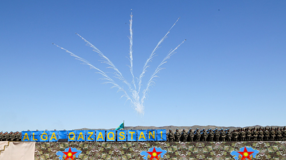 Боевой парад в Казахстане стал вторым по счету, первый проводился пять лет назад на полигоне "Гвардейский". За действиями наблюдал Президент страны Нурсултан Назарбаев. Руководил парадом главнокомандующий Сухопутными войсками Вооружённых сил РК, генерал-майор Мурат Бектанов.